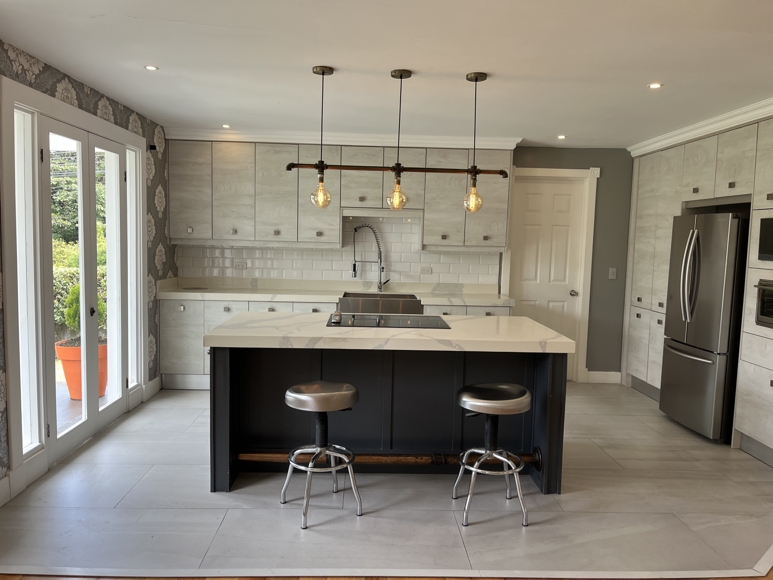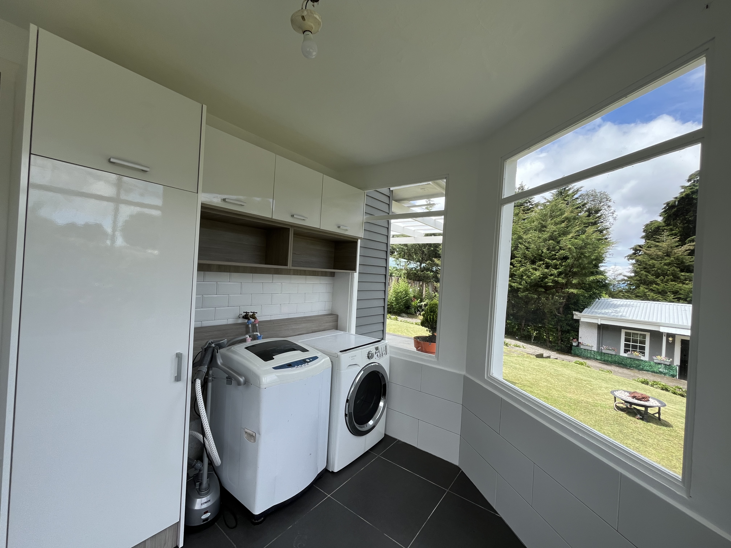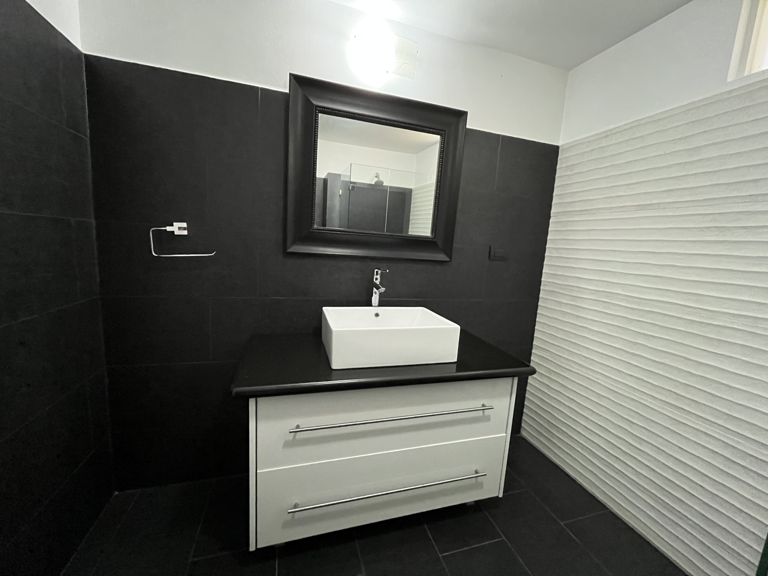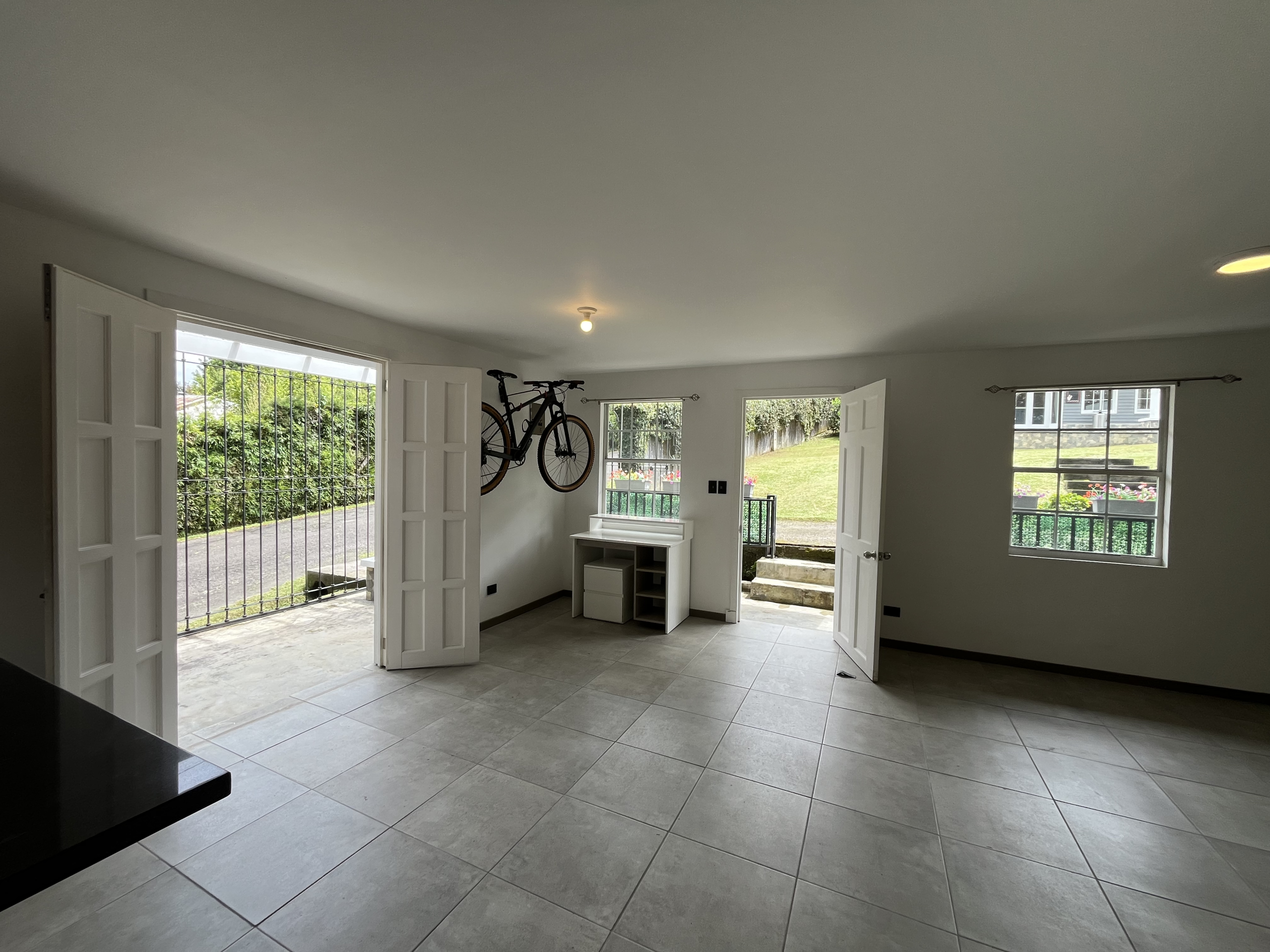 La casa de huéspedes (65m2) completamente renovada, en concepto de espacio abierto de 1 habitación, baño totalmente nuevo, sala con acceso a una terraza con pérgola. un área de escritorio y una cocina completa con muebles recién instalados al igual que un closet amplio nuevo. Una cochera y cuarto de lavado con portón, todo con acceso independiente de la casa principal.