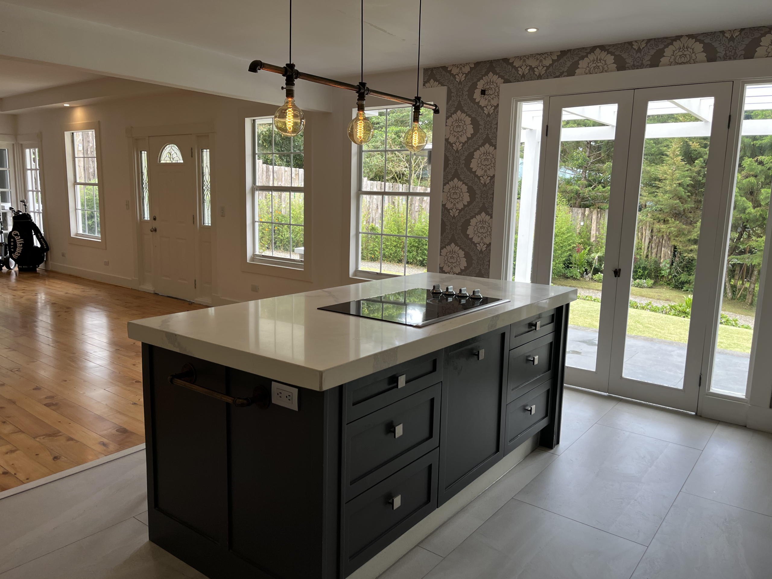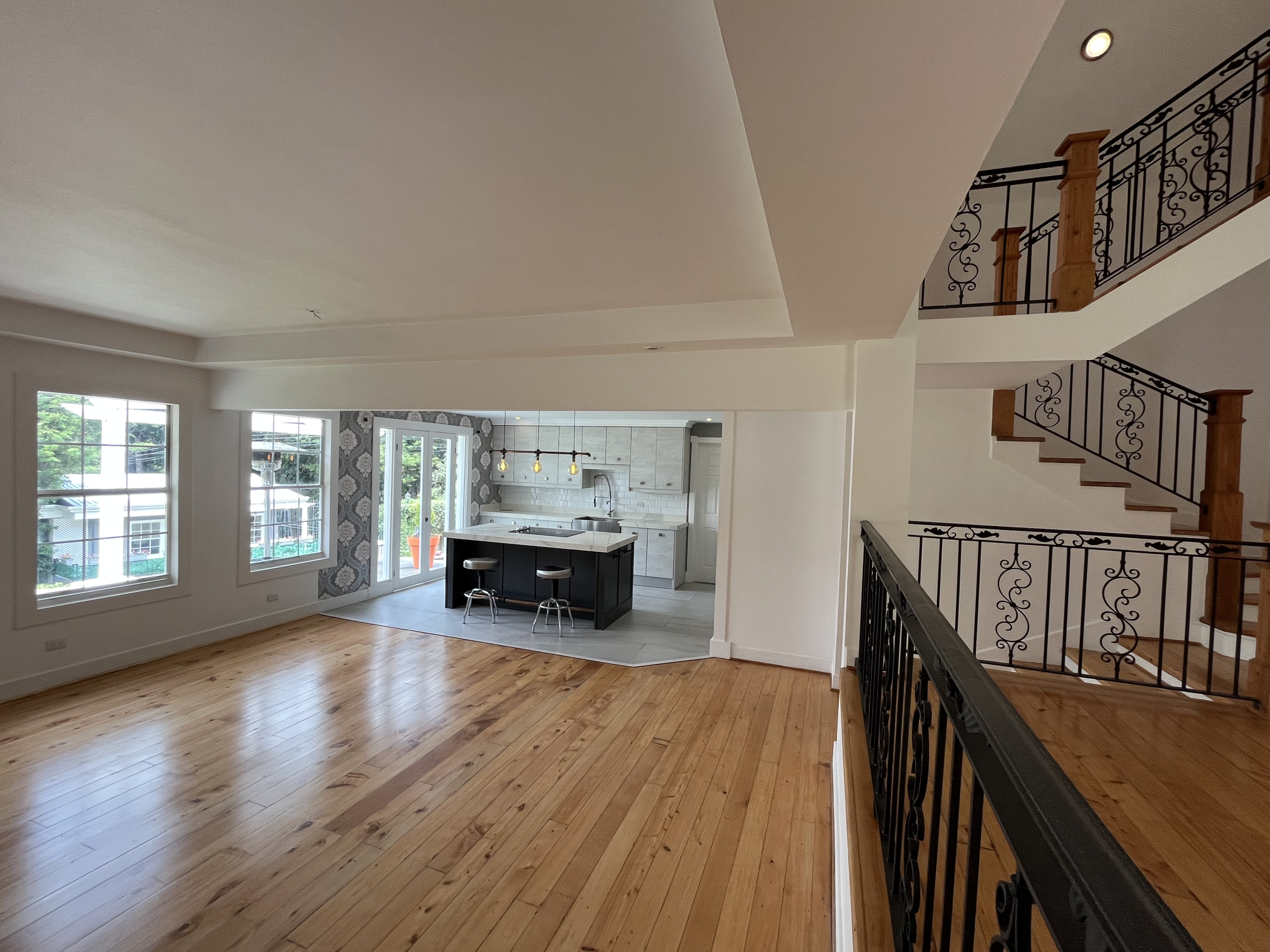 Pisos de madera de ciprés recién restaurado, molduras y guarniciones en toda la casa.