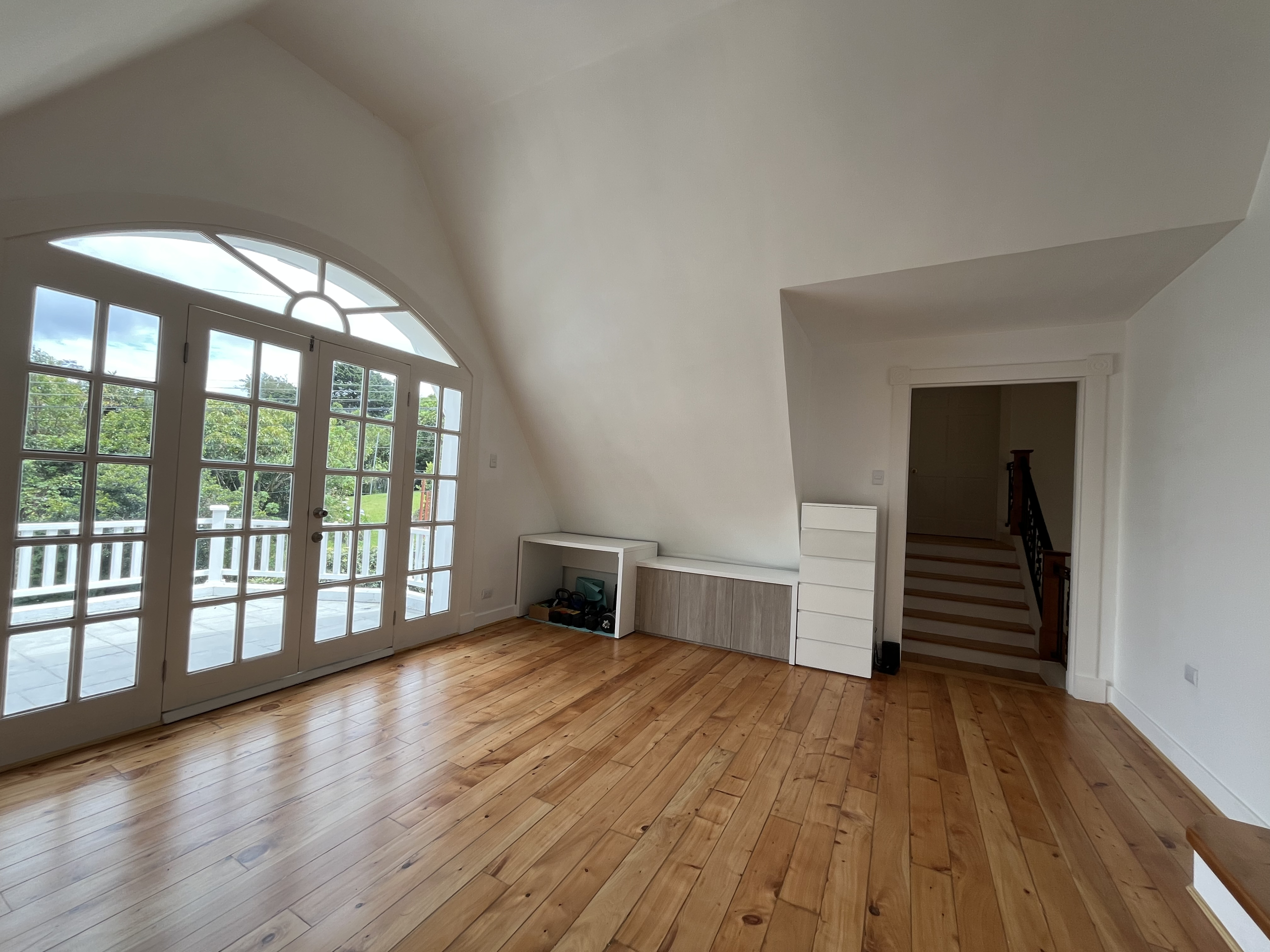 Tercer nivel: en este podemos encontrar el dormitorio principal con su baño renovado con tina, 2 closets, una sala amplia que se puede utilizar como sala familiar con acceso a un gran balcón/terraza con vistas a la montaña.